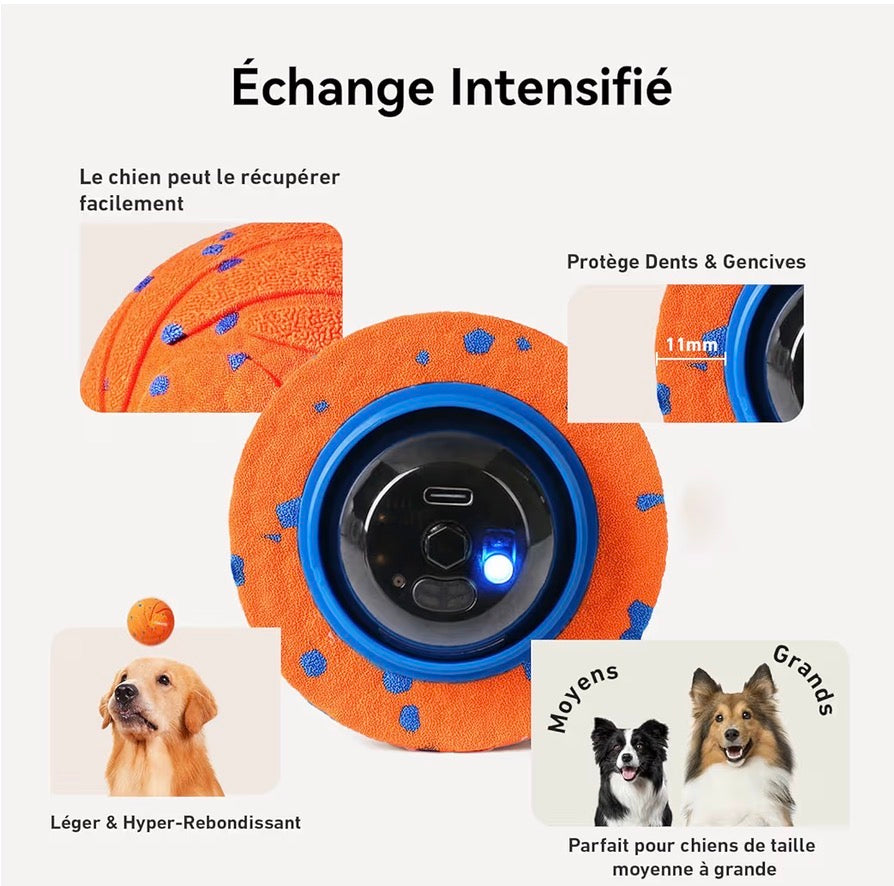 Balle interactive intelligente pour chien – 3 modes de jeu, rechargeable et résistante à l’eau