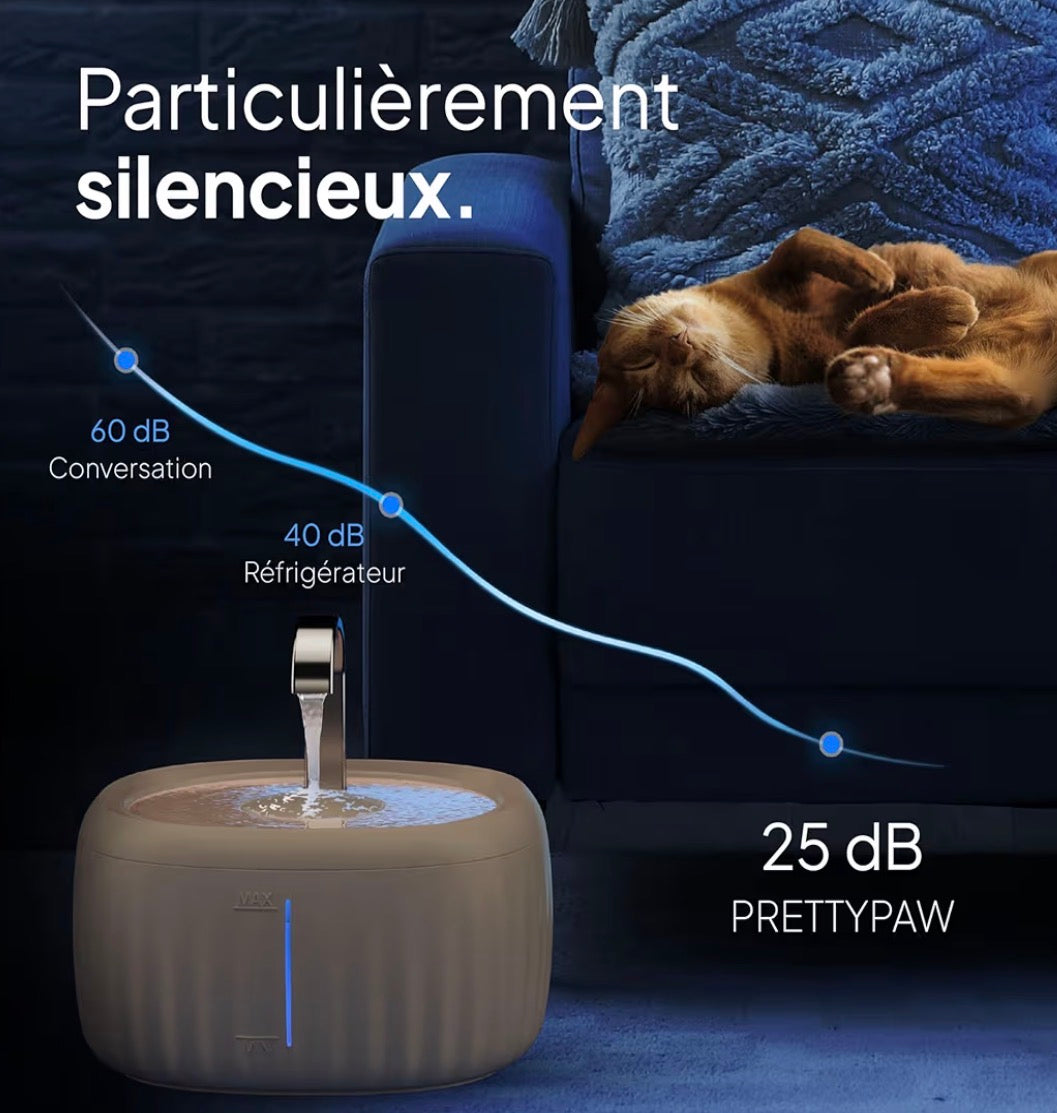 Particulièrement silencieuse avec un fonctionnement à faible bruit, elle ne perturbe ni votre chat ni votre environnement. Fabriquée sans BPA, elle est sûre pour la santé de votre animal et facile à démonter pour un nettoyage rapide.