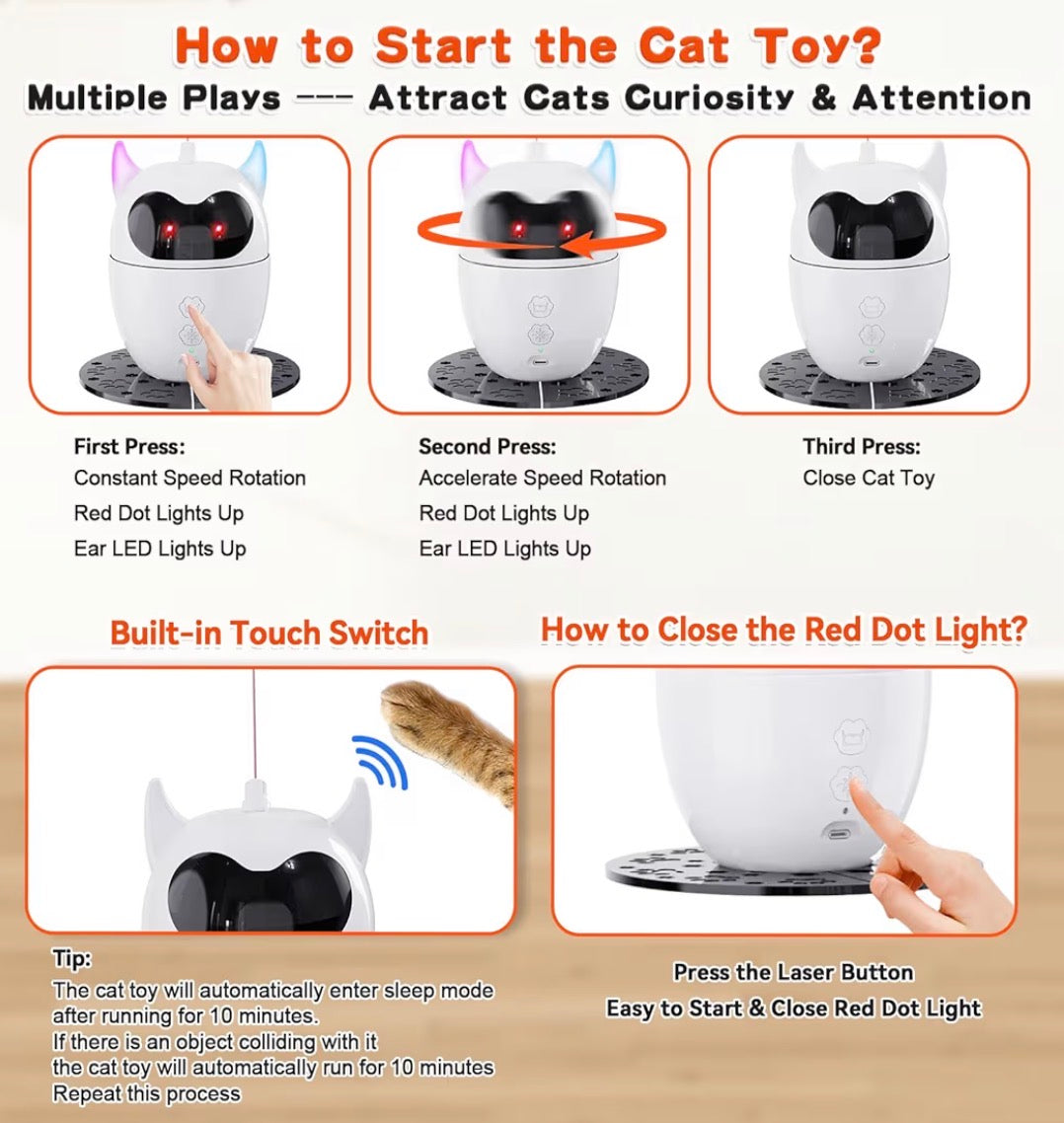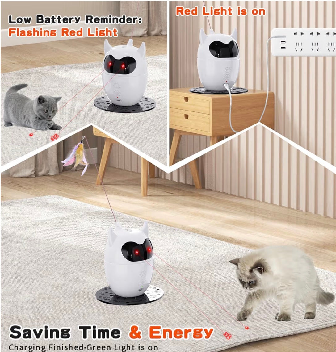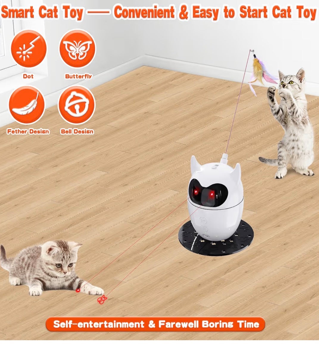 Jouet interactif intelligent pour chat avec laser 360° et plume – Rechargeable et automatique