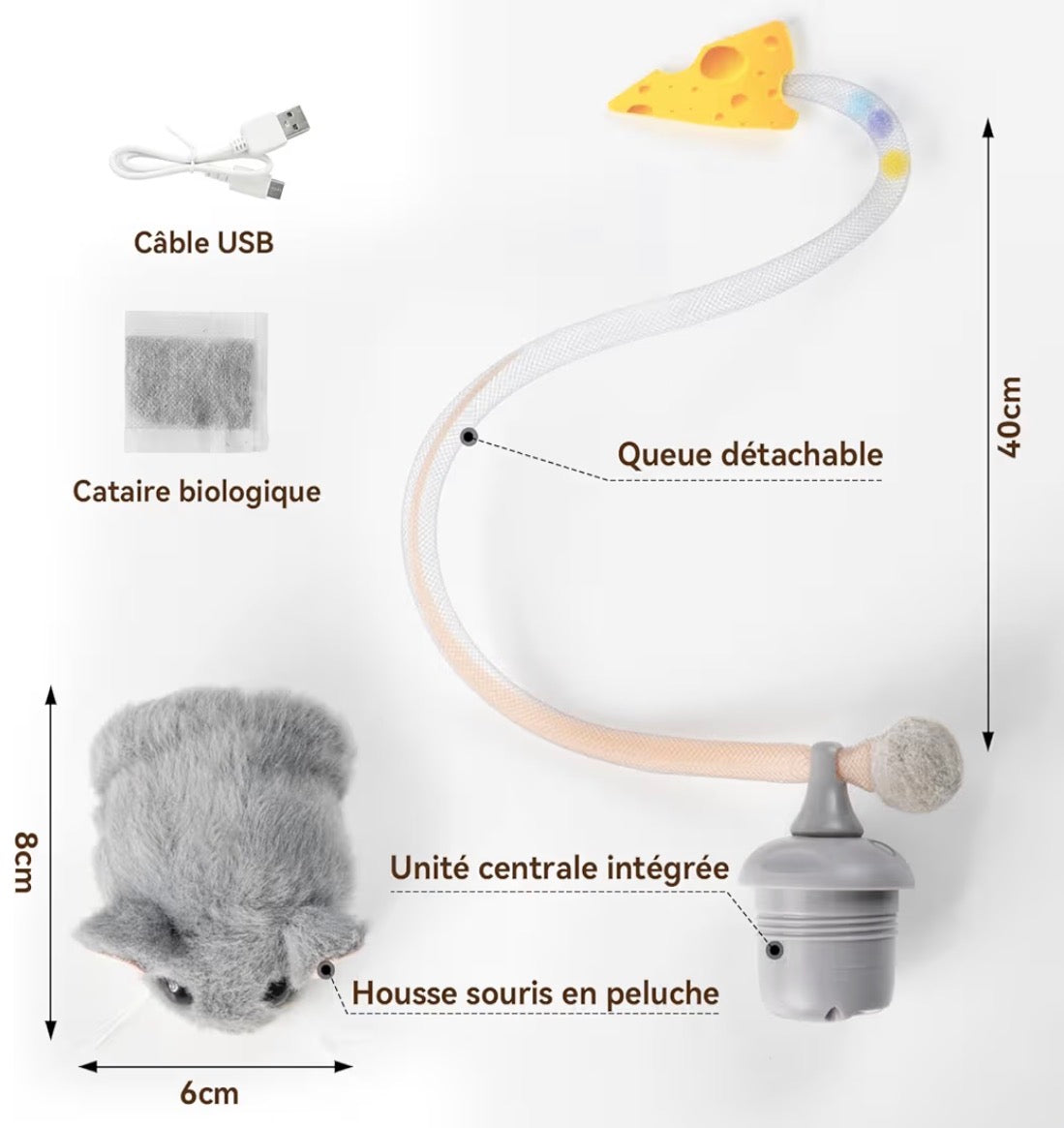 Jouet Interactif Intelligent pour Chat – Souris Électrique Rechargeable avec Catnip & Mouvement Réaliste