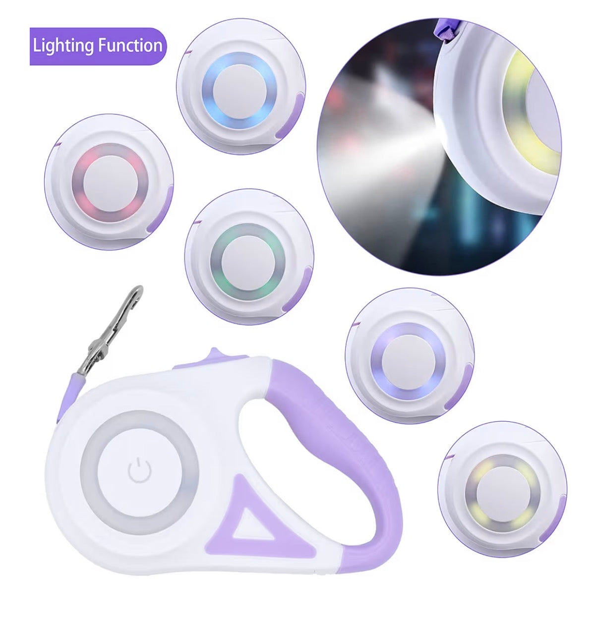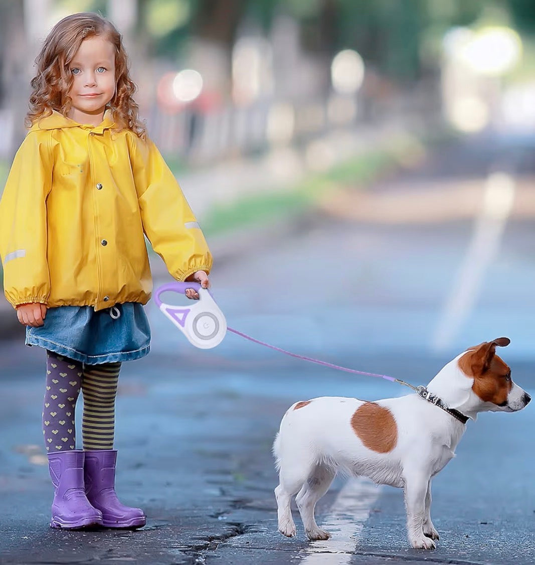 Laisse rétractable pour chien 5 m avec éclairage LED – Poignée ergonomique et frein sécurisé