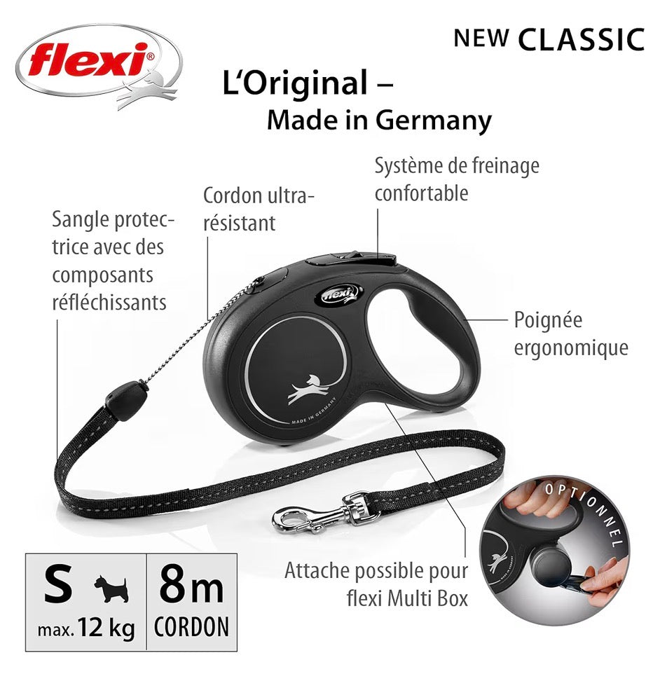 Laisse rétractable pour chien 8 m – Système de freinage confortable et poignée ergonomique