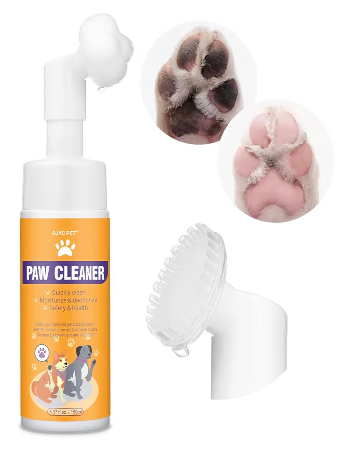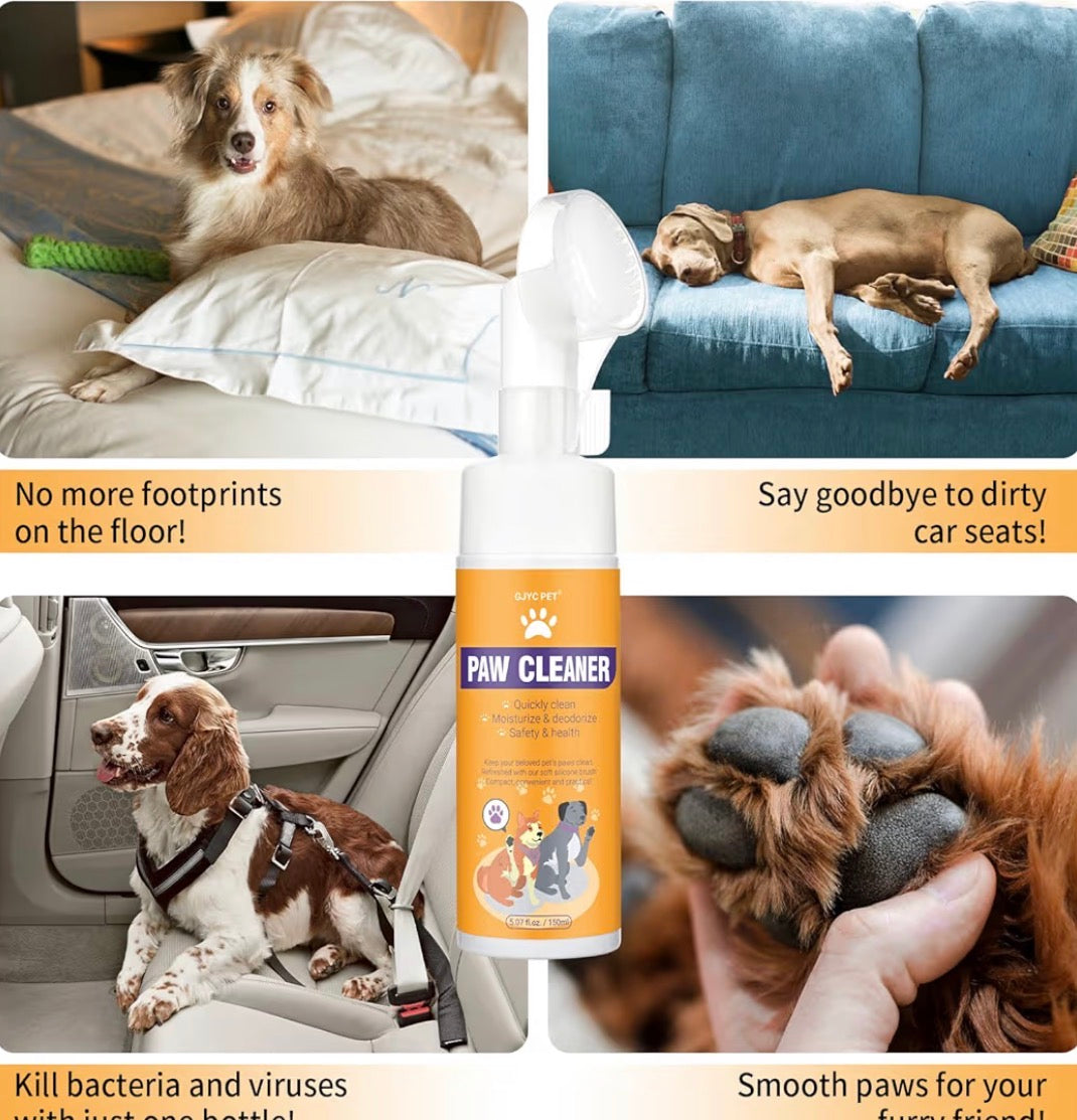 Nettoyant Moussant pour Pattes de Chien – Sans Rinçage, Brosse Silicone Douce – Nettoie, Hydrate & Désodorise (150 ml)