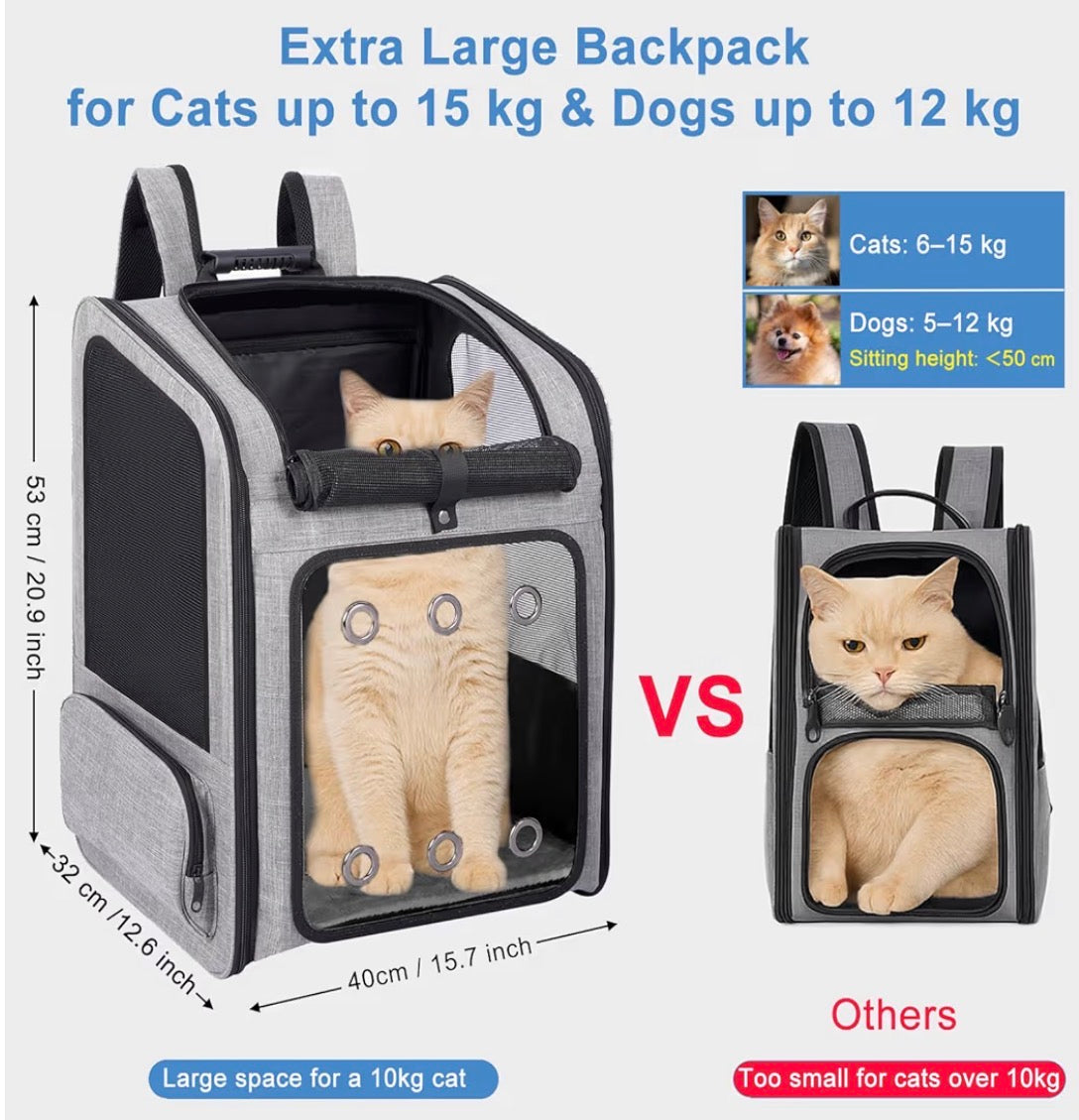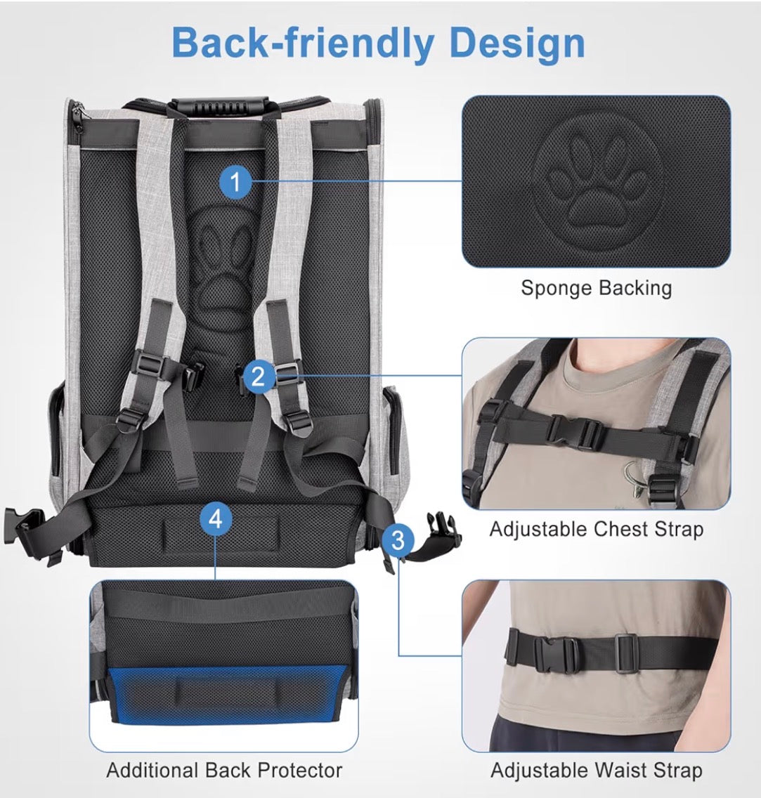 Sac à dos de transport grande capacité pour chat et chien – Respirant et confortable