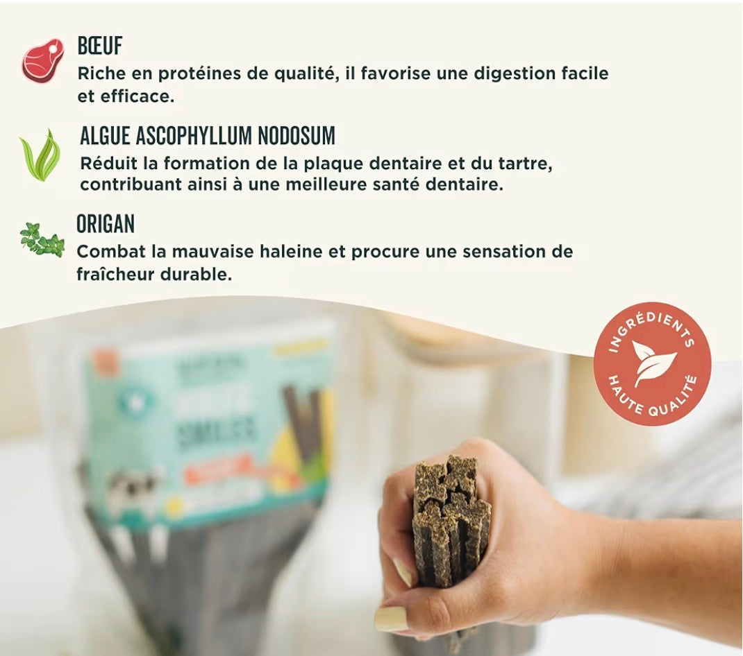 Sticks dentaires naturels pour chien – Goût bœuf 🥩 | Haleine fraîche & dents propres